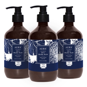 2 in 1ビアードウォッシュ500ml/16.9 oz-シーブリーズの香り-ブラックポンプ付きブラウンボトル、ブルーラベル-ジェントルクレンザー & コンディショナー